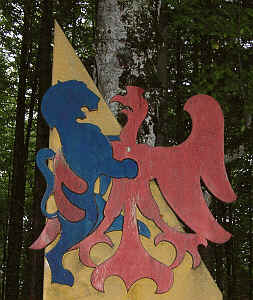 Leider gab es auf dem Schild keine Entfernungsangabe. Da wir uns noch nicht so gut ausgekannt hatten, sind wir den gegenüber dem Steig langweiligen Forstweg bis zum "Gletscherschliff" gefolgt. Grenzenlos - der Bayrische Löwe tanzt mit dem Tiroler Adler.
