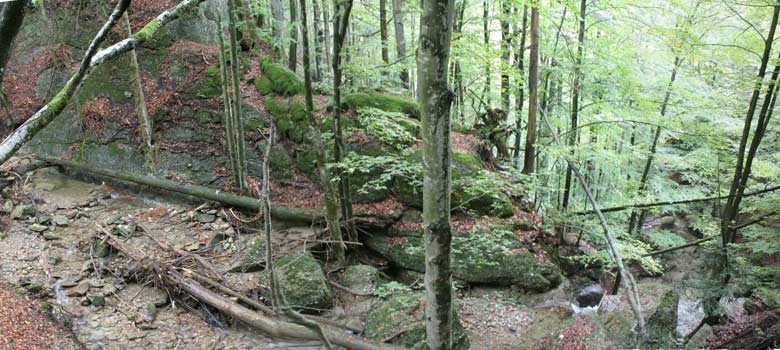 Weiter abwärts ist der Verlauf vom Bach schwer einsehbar.