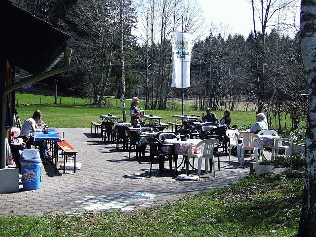 24. April 2006Wir fahren von Füssen nach Hopfen am See, im Ort rechts an der Kirche vorbei hoch zur Fachklinik Enzensberg, zwischen den Klinikgebäuden hindurch bis zur allerletzten Parkmöglichkeit am Waldrand. Von hier aus sind es kurzweilige 30 Min. bis zum Kiosk.