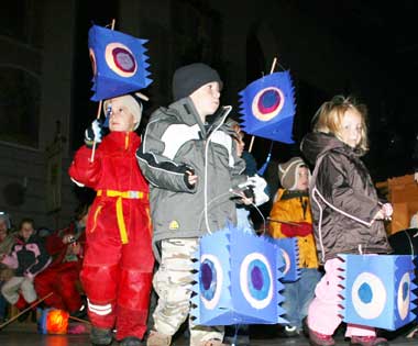Das Licht ist ausgemacht, die Kirche wird von den Kerzen der Kinder beleuchtet und der ganzes Umzug wird begleitet von der Musik