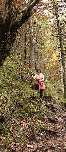 Noch ein Hin und Her, und wir stehen auf der Forststraße, die von der Talstation zur Breitenbergbahn führt. Durch die vielen "Besonderheiten" beim Aufstieg haben wir gar nicht gemerkt, dass wir 400 Höhenmeter überwunden haben. Noch einmal 330 hm sind es bis zur Breitenberg Bergstation, diesmal jedoch auf sanft ansteigender Forststraße. Zurück durch die Reichenbachklamm - na ja, uns langt es für heute. Wir wandern aber noch ein kurzes Stück sanft bergauf, bis wir den Aggenstein (1986 hm) sehen. Dann entscheiden wir uns für den Abstieg auf der Forststraße in Richtung Tegelberg Talstation. Unten zweigt ein Weg ab, der uns am Eingang der Reichenbachschlucht vorbei schräg nach unten zum alten Zollhaus zurück bringen wird. Anschlusswanderungen: