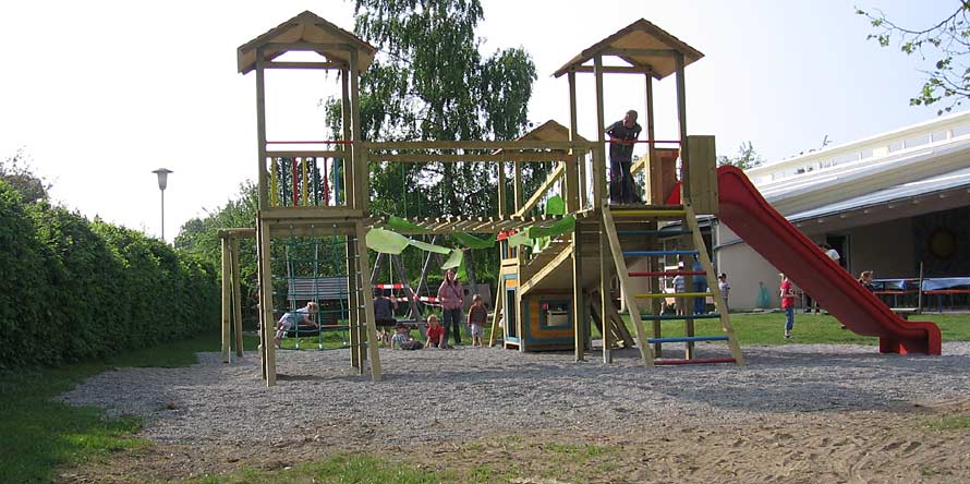 | Die feierliche Eröffnung und anschließende Segnung des neuen Spielgerüstes im Kindergarten Don Bosco in Heimenkirch in den folgenden Bildern: | |