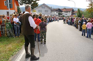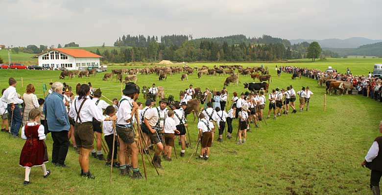 | Dieses Jahr (2007) waren es rekordverdächtige 251 Teilnehmer am Maierhöfner Viehscheid (Rinder, Ziegen), viele Hirten und Helfer (ca. 100) und unzählige Zuschauer, die den ganzen Tag diesem traditionellen Fest beiwohnten. Es ist der grösste Viehscheid im Westallgäu und der längste (etwa 30km) in Deutschland. 5 Kranzkühe waren es diesmal - d.h. die Saison 2007 war unfallfrei.