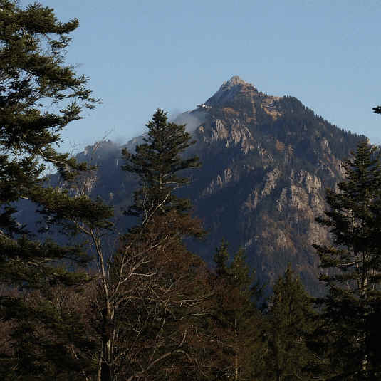Wir gehen heute die quer Feld ein Variante, die vom historischen Grenzstein aus dem Rücken des Schwarzenberg folgt und nach ca. 1,5km auf die Forststraße trifft, die nach Hohenschwangau hinunter führt. |