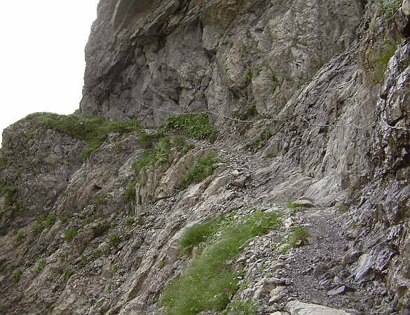 Der Weg über die Rappenseehütte ist zwar länger, dafür ohne richtig schwindelfreie Abschnitte. Es gibt aber 2 Kletterstellen, die mit Brücke und Leiter gesichert sind. |