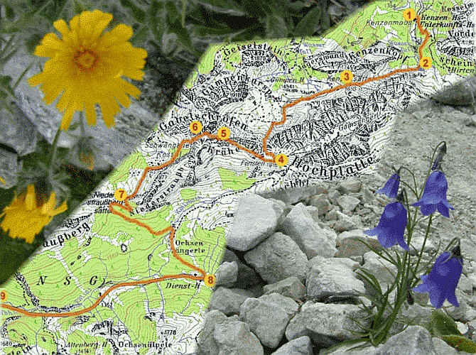 Von hier aus ein Blick nach Osten auf die Hochplatte, entgegengesetzt zur nun "zahmen" Krähe (5).