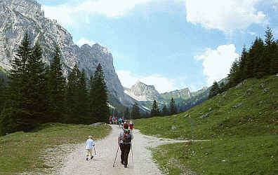 6.00 h, die meisten Bergsteiger sind längst schon unterwegs, aber wir hatten nicht so viel vor und "alle Zeit der Welt". Natürlich haben wir nicht so gut geschlafen, wie im Bett zu Hause, aber das lag mehr an der aufregend ungewohnten Situation. Ich würde immer wieder das Matrazen-Lager dem Zimmer vorziehen. Nach einem ausgiebigen Frühstück mit dampfendem Kaffee oder Kakao wanderten wir diesmal die Fahrstraße hinunter bis zur Musauer Alm.