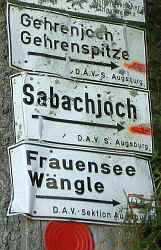 Hier ging es rechts über die Wiese zur Brücke (8) des jungen Sababach und dann links in Richtung Halejoch. Verwirrt standen wir nach einer Weile wieder einmal vor einer Kehre eines Forstwegs (9), der nicht in der Karte verzeichnet ist - und kein Wegweiser weit und breit, der uns sagte: "Nach oben oder unten." Nach oben zum Halejoch, war einstimmig die Meinung.